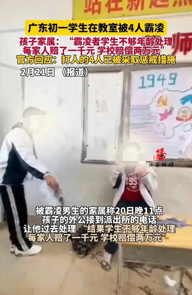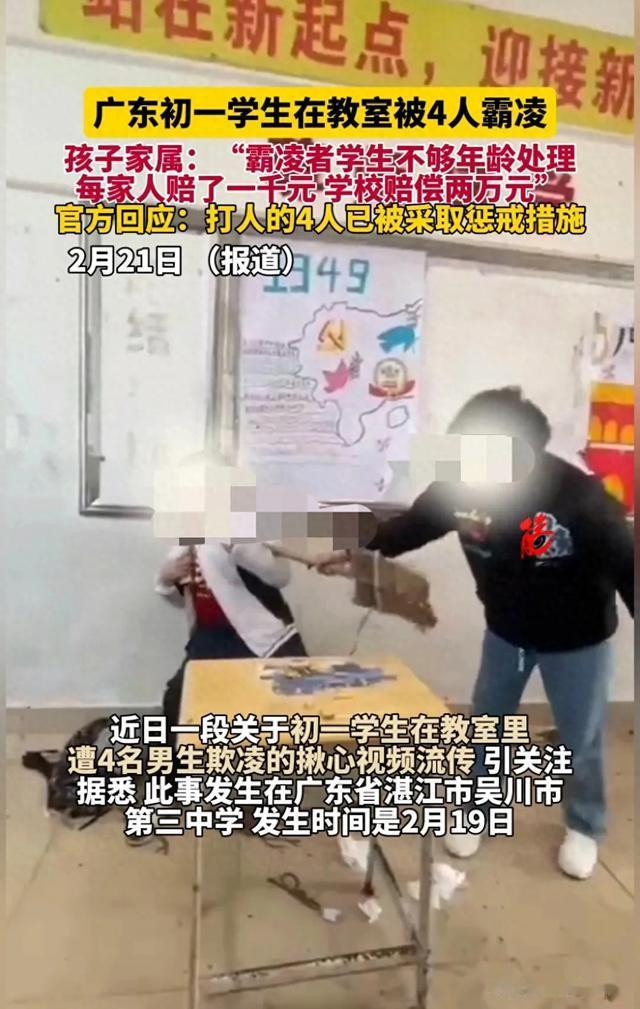 吴川校园霸凌后续: 四名施暴者被惩戒, 每家赔1000元, 学校赔2万